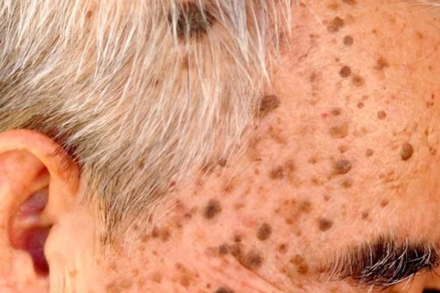 Rough, scaly patches on sun-exposed areas. Precancerous, treatable, and common in fair skin.